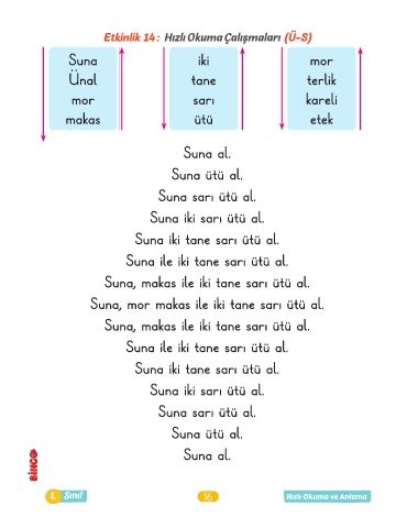 1. Sınıf 16 Hızlı Okuma ve Anlama