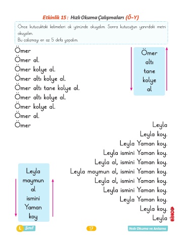 Etkinlik 15 : Hızlı Okuma Çalışmaları (Ö-Y)