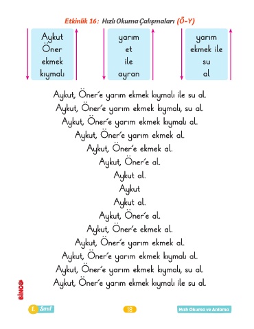 1. Sınıf 18 Hızlı Okuma ve Anlama