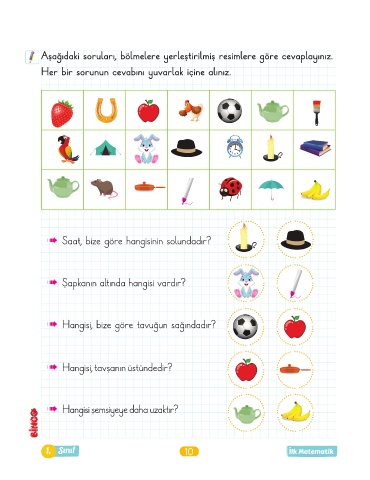 Aşağıdaki soruları, bölmelere yerleştirilmiş resimlere göre cevaplayınız.
