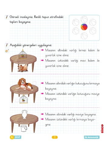 ➠ Masanın altındaki varlığı maviye boyayınız.