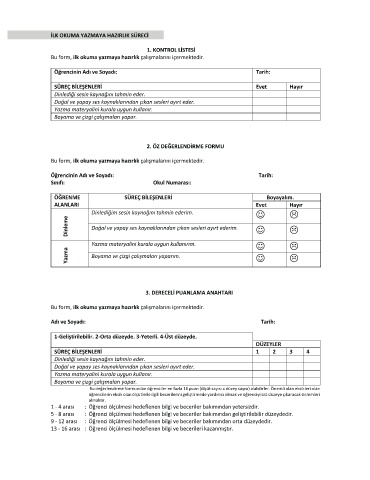 Bu form, ilk okuma yazmaya hazırlık çalışmalarını içermektedir.