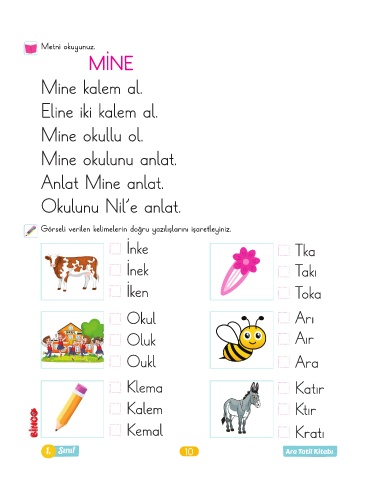 Görseli verilen kelimelerin doğru yazılışlarını işaretleyiniz.