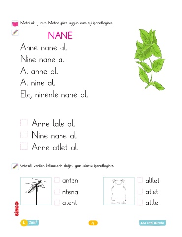 1. Sınıf 4 Ara Tatil Kitabı