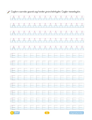 Çizgilerin üzerinden geçerek çizgi hareket yönünü belirleyelim. Çizgileri tamamlayalım. 1. Sınıf 14 Çizgi Çalışmaları