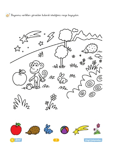Boyanmış varlıkları görselden bularak istediğimiz renge boyayalım. 1. Sınıf 7 Çizgi Çalışmaları