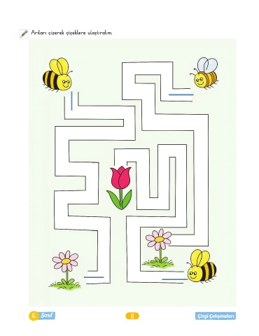 Arıları çizerek çiçeklere ulaştıralım. 1. Sınıf 8 Çizgi Çalışmaları