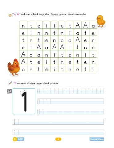 "a, A” harflerini bularak boyayalım. Tavuğu, yavrusu civcive ulaştıralım.