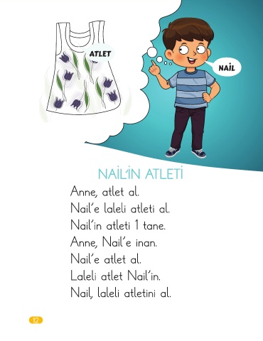 ATLET NAİL NAİL’İN ATLETİ Anne, atlet al. Nail'e laleli atleti al. Nail'in atleti 1 tane. Anne, Nail'e inan. Nail'e atlet al. Laleli atlet Nail'in. Nail, laleli atletini al. 12