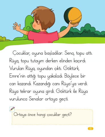 Çocuklar, oyuna başladılar. Sena, topu attı.