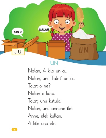 NALAN KUTU u U UN Nalan, 4 kilo un al. Nalan, unu Talat’tan al. Talat o ne? Nalan o kutu. Talat, unu kutula. Nalan, unu annene ilet. Anne, elek kullan. 4 kilo unu ele. 16