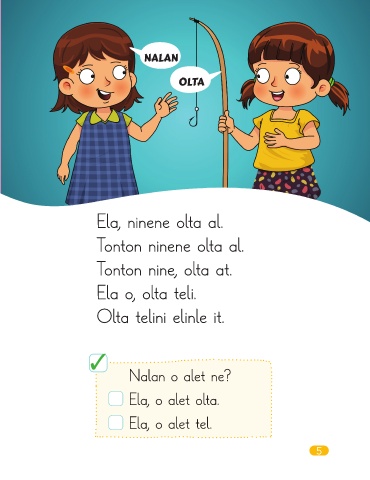 NALAN OLTA Ela, ninene olta al. Tonton ninene olta al. Tonton nine, olta at. Ela o, olta teli. Olta telini elinle it. Nalan o alet ne? Ela, o alet olta. Ela, o alet tel. 5
