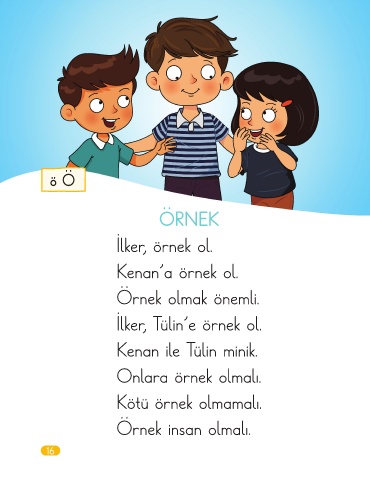 ö Ö ÖRNEK İlker, örnek ol. Kenan’a örnek ol. Örnek olmak önemli. İlker, Tülin’e örnek ol. Kenan ile Tülin minik. Onlara örnek olmalı. Kötü örnek olmamalı. Örnek insan olmalı. 16