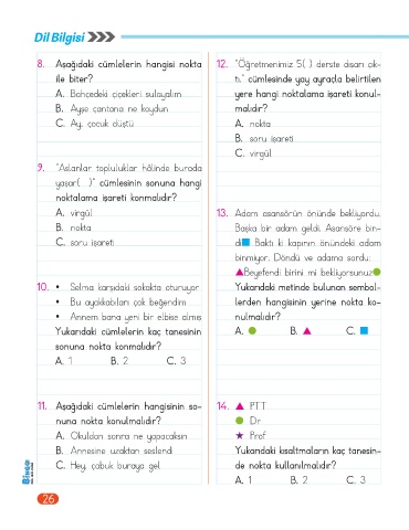 8. Aşağıdaki cümlelerin hangisi nokta 12. “Öğretmenimiz 5( ) derste dışarı çık-