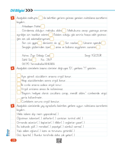 3 Aşağıdaki mektupta ile belirtilen yerlere gelmesi gereken noktalama işaretlerini