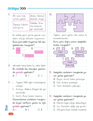 III. İzmir’in Buca ilçesine taşınmış. 12. Aşağıdaki cümlelerin hangisinde ya-