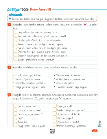 3 Aşağıda verilen cümlelerin başındaki kutucuklara cümlelerde noktalama işaretleri
