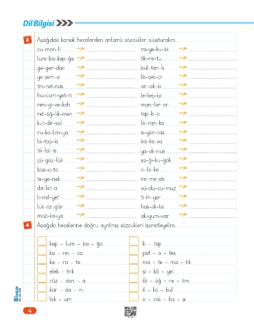 3   Aşağıdaki karışık hecelerden anlamlı sözcükler oluşturalım.