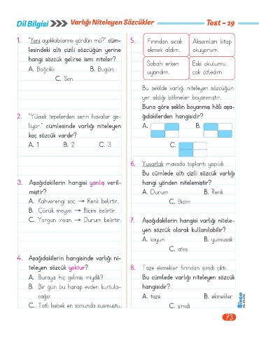 Dil Bilgisi               V arlığı Ni   t eleye  n Sö  z cük  le r                         Test - 19