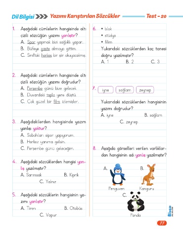 Dil Bilgisi               Yazımı Karıştırılan Sözcükler                                     Test - 20