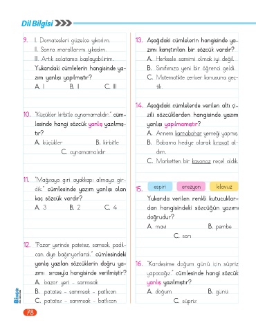 dik.” cümlesinde yazım yanlışı olan              15.      espiri        erezyon         kılavuz