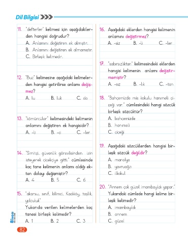 11.  "defterler” kelimesi için aşağıdakiler-           16.  Aşağıdaki eklerden hangisi kelimenin
