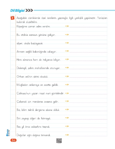 3   Aşağıdaki cümlelerde özel isimlerin yazımıyla ilgili yanlışlık yapılmıştır. Yanlışları