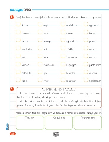 Parçada verilen tekil isim, çoğul isim ve topluluk isimlerini ait oldukları kutuya yazalım.