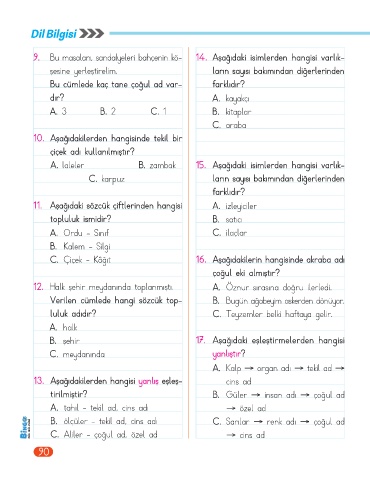 Page 92 - 3.Sinif_Dil bilgisi_yeniı.indd