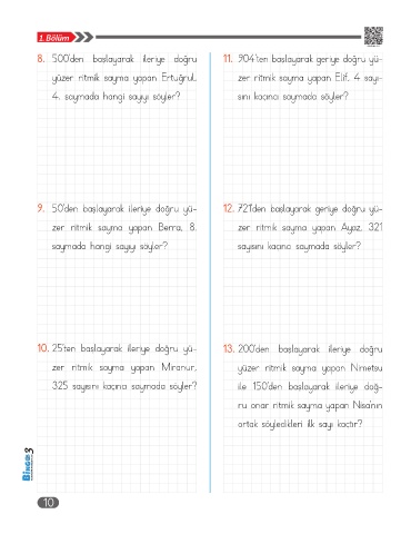 10. 25’ten başlayarak ileriye doğru yü- 13. 200’den başlayarak ileriye doğru