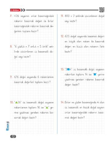 12. 623 doğal sayısında basamak değeri