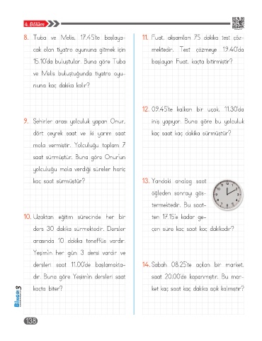 kaç saat sürmüştür? 13. Yandaki analog saat