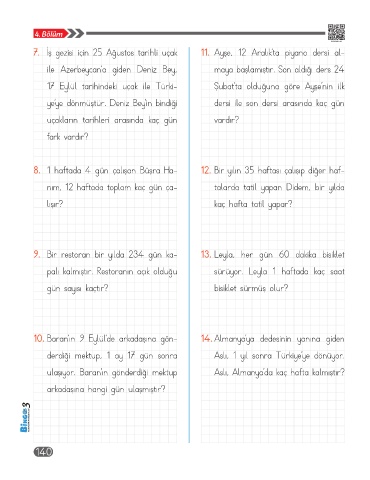 9. Bir restoran bir yılda 234 gün ka- 13. Leyla, her gün 60 dakika bisiklet