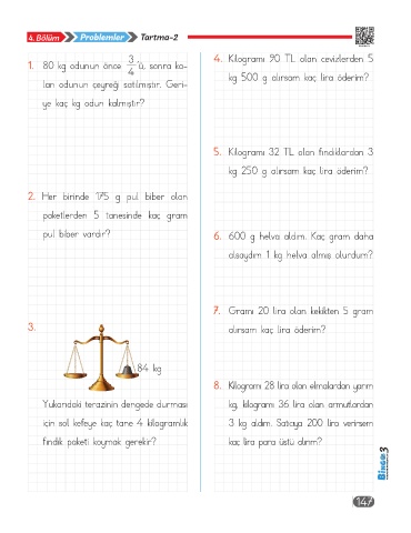 pul biber vardır? 6. 600 g helva aldım. Kaç gram daha