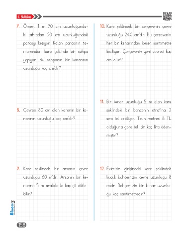 9. Kare şeklindeki bir arsanın çevre 12. Evimizin girişindeki kare şeklindeki
