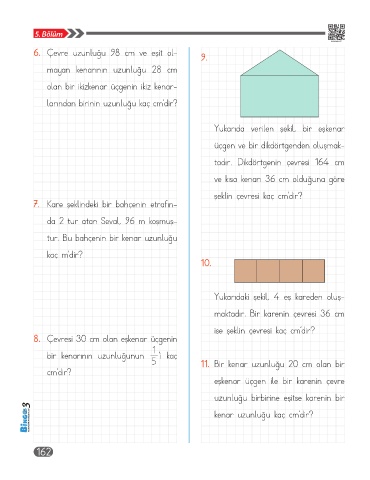 6. Çevre uzunluğu 98 cm ve eşit ol- 9.