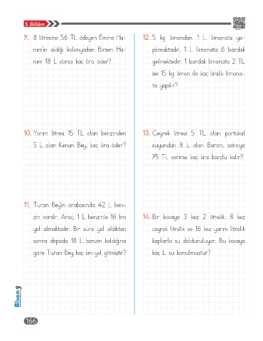 9. 8 litresine 56 TL ödeyen Emine Ha- 12. 5 kg limondan 1 L limonata ya-