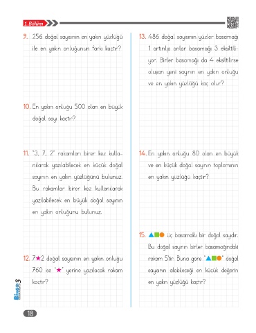 9. 256 doğal sayısının en yakın yüzlüğü 13. 486 doğal sayısının yüzler basamağı