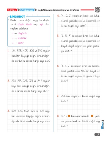 1. Bölüm Problemler Doğal Sayıları Karşılaştırma ve Sıralama