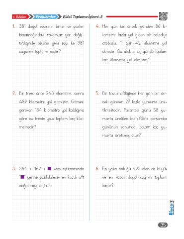 1. Bölüm Problemler Eldeli Toplama İşlemi-2