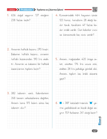 1. Bölüm Problemler Toplama ve Çıkarma İşlemi