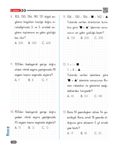 8. 103, 130, 134, 181, 131 doğal sa- 11. 126 - 130 - 134 - ■ - 142 - ▲