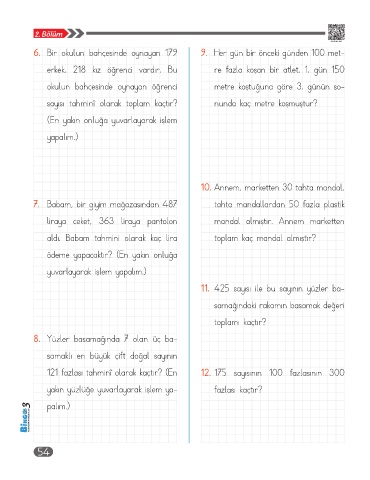 6. Bir okulun bahçesinde oynayan 179 9. Her gün bir önceki günden 100 met-
