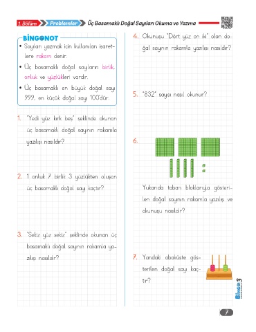 1. Bölüm Problemler Üç Basamaklı Doğal Sayıları Okuma ve Yazma