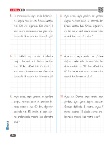6. İki bisikletli, aynı anda birbirlerine 9. Aynı anda, aynı yerden, zıt yönlere