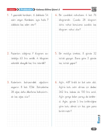 1. 1 yaşındaki kardeşim, 6 dakikada 54 4. Bir çuvaldaki nohutların 4 katı 76