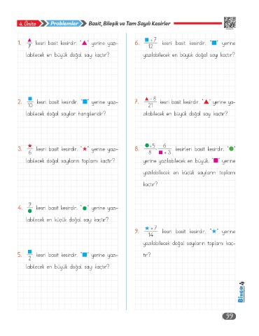 4. 9 kesri basit kesirdir. " ” yerine yazı-