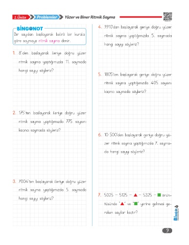1. Ünite Problemler Yüzer ve Biner Ritmik Sayma