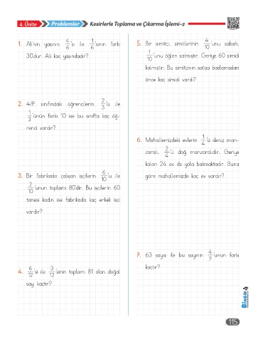 4. Ünite Problemler Kesirlerle Toplama ve Çıkarma İşlemi-2