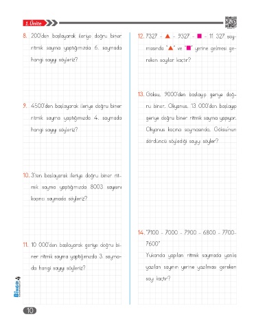 8. 200’den başlayarak ileriye doğru biner 12. 7327 - ▲ - 9327 - ■ - 11 327 say-